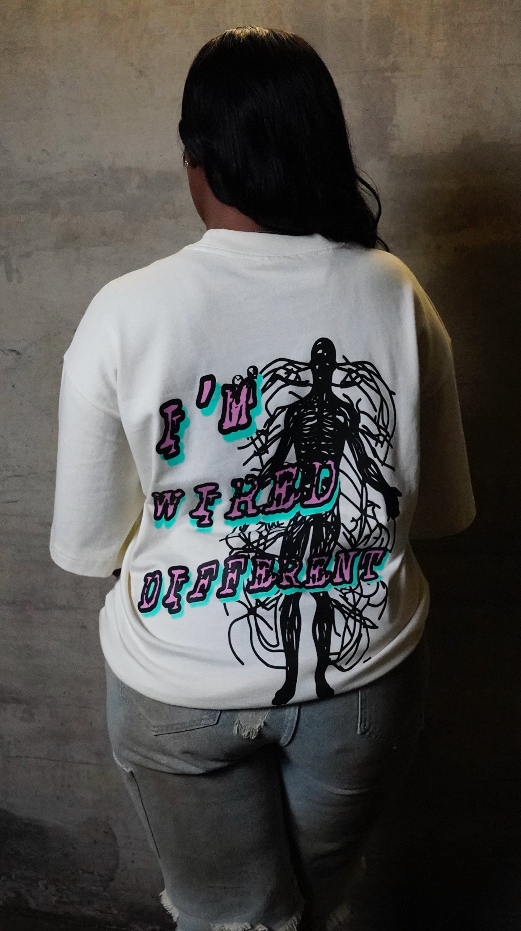 “I’m Wired Different” Pink & Mint - OFF WHITE Tee